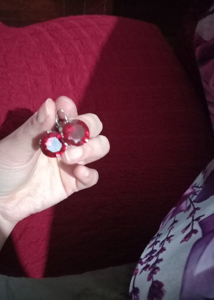 Kırmızı taşlı küpe