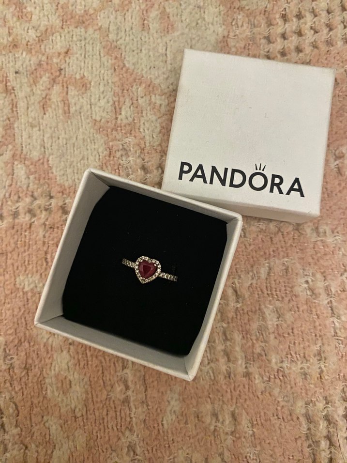 Pandora marka, kırmızı kalp detaylı, zarif yüzük, romantik akşamlar için uygun. Bir kere taktım faturası elimde değil ne yazık ki ama orijinal içerisinde yazıyor. 925 ayar gümüş