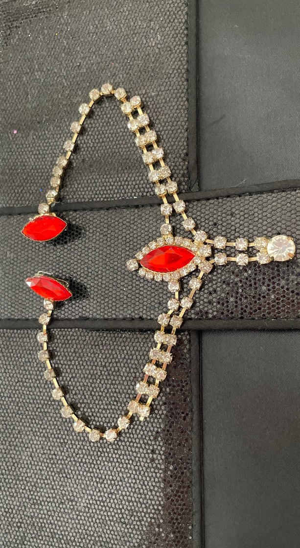 Kırmızı taşlar ve yılan deseniyle detaylandırılmış zincirli kadın Saç zinciri, gotik ve avangart tarz için uygun.