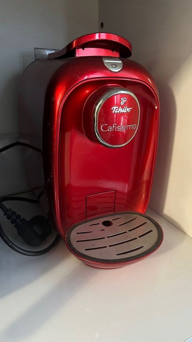 Kırmızı Tchibo Cafissimo kahve makinesi, kompakt tasarımı ve kullanımı kolay damlama tepsisi ile pratik kahve yapma imkanı sunar. Kapsül kahve ile demleme yapar, herhangi bir sorunu yok☕