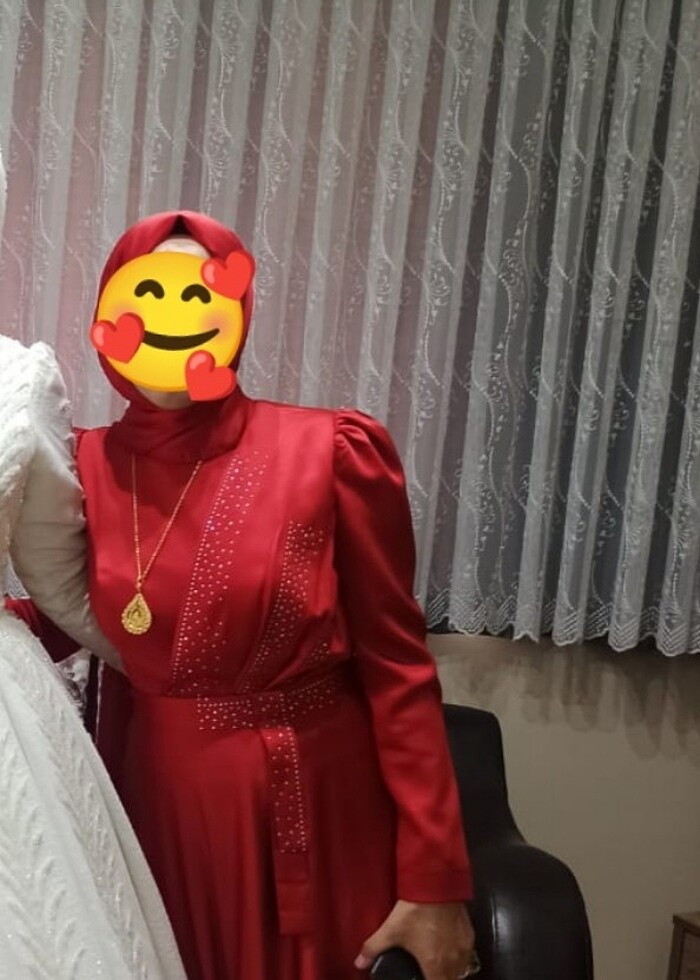Kırmızı saten tesettür abiye elbise
