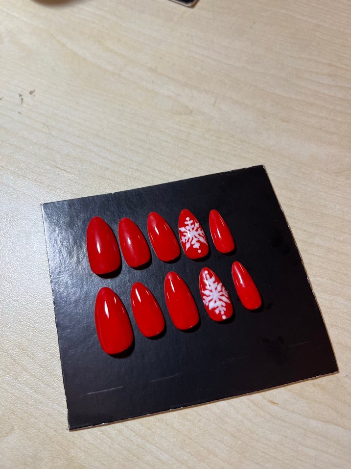kırmızı el yapımı protez görünümlü tırnak seti.(isteğe göre nail artını değiştirebilirim)