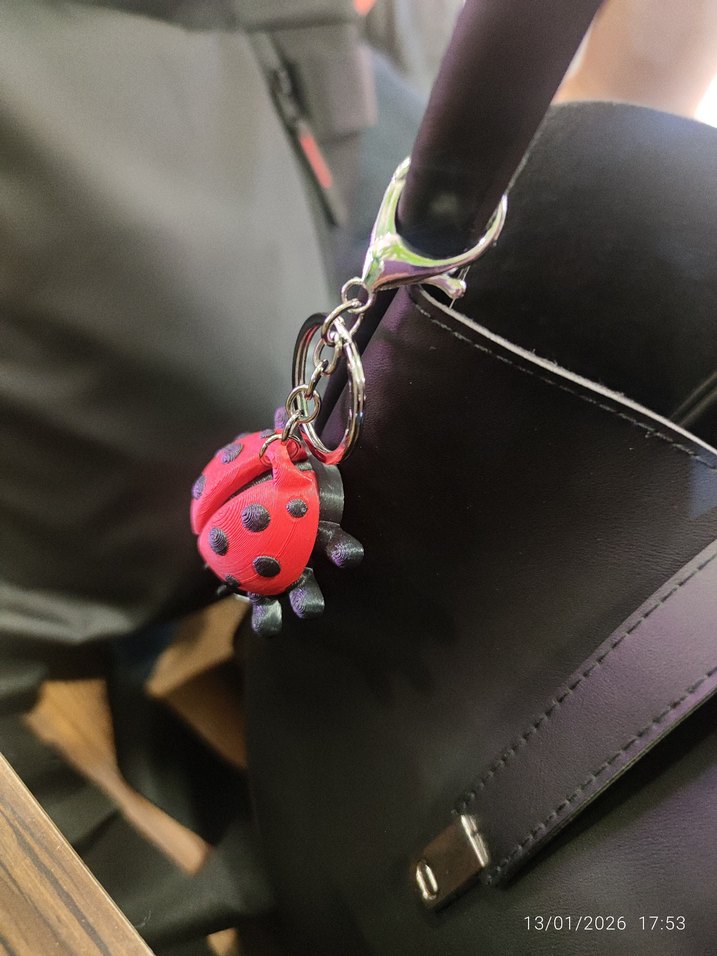 Canlı kırmızı renkte, tokalı biker tarzı ve uğur böceği figürlü kadın anahtarlık, gotik ve moda öncülerine uygun. Ben fotoğraf çekmek için çanta charmı gibi gösterdim böyle de kullanılır. Baskıyla çıkarttırılmış sanırım ben böyle almıştım kullanmıyorum