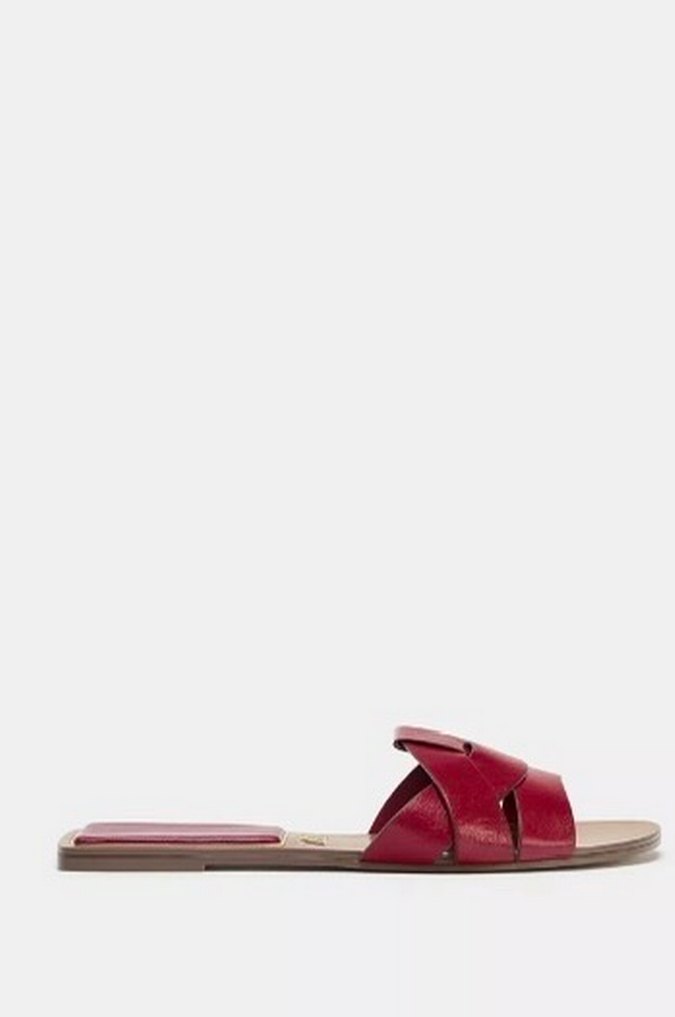 Kırmızı Tokalı Deri Kadın Terlik