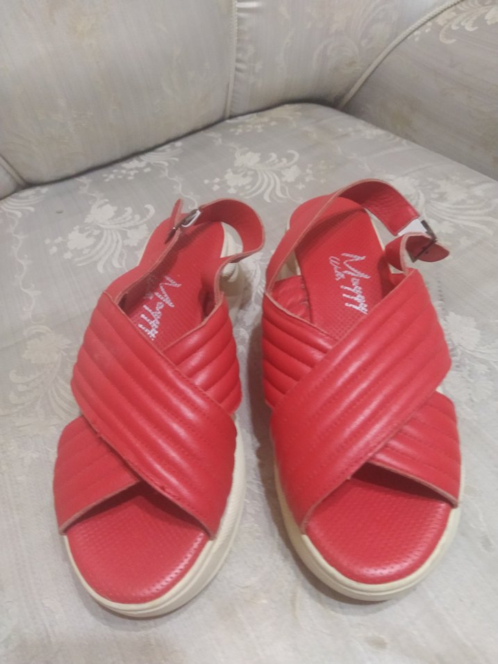 Kırmızı tokalı bantları ve rahat kauçuk tabanı ile günlük sokak stiline uygun dolgu topuklu sandaletler.