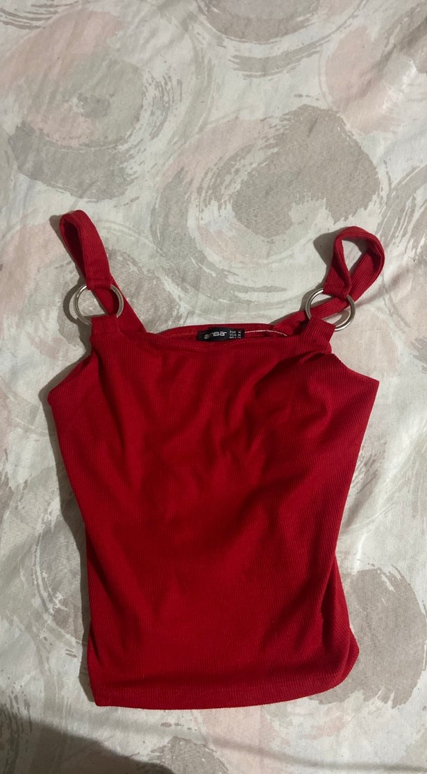 Kırmızı Tokalı İnce Askılı Kadın bluz