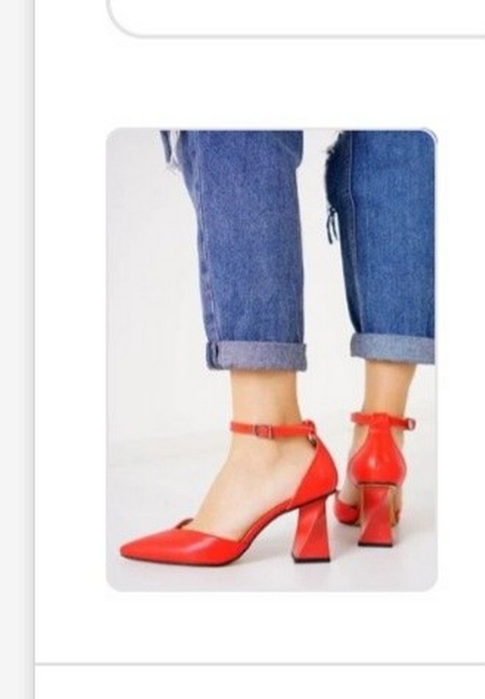 Kırmızı Tokalı İnce Topuklu Kadın Ayakkabı