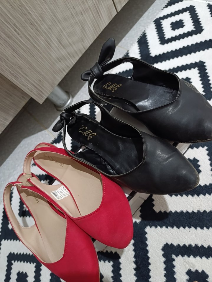Kırmızı renkli, tokalı bantlı, kauçuk malzemeden blok topuklu kadın stiletto. Günlük kullanıma uygun bohem tarzda.