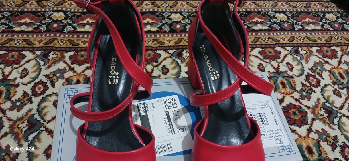 Kırmızı Tokalı Kalın Topuklu Kadın Ayakkabı