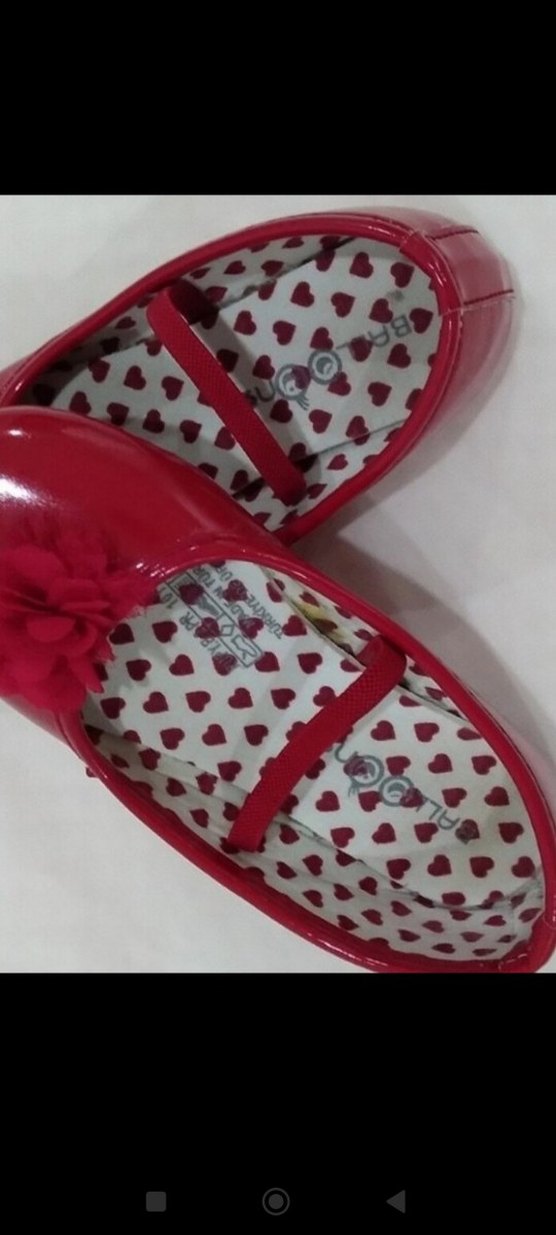 Kız çocukları için tokalı kırmızı babet ayakkabı, iç kısmında kalp desenli baskı ile. Kauçuk malzemeden üretilmiştir, şıklık ve rahatlık sunar. ❤️