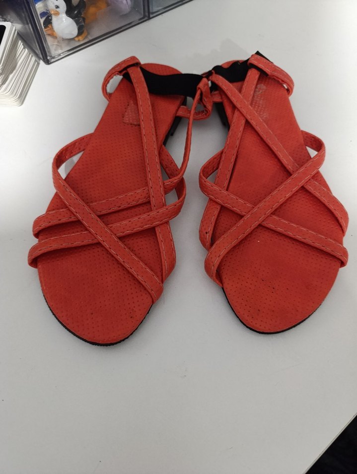 Kırmızı tokalı stiletto kadın sandaletler, kauçuk malzemeden olup minimalist ve bohem tarzda günlük kullanıma uygundur.