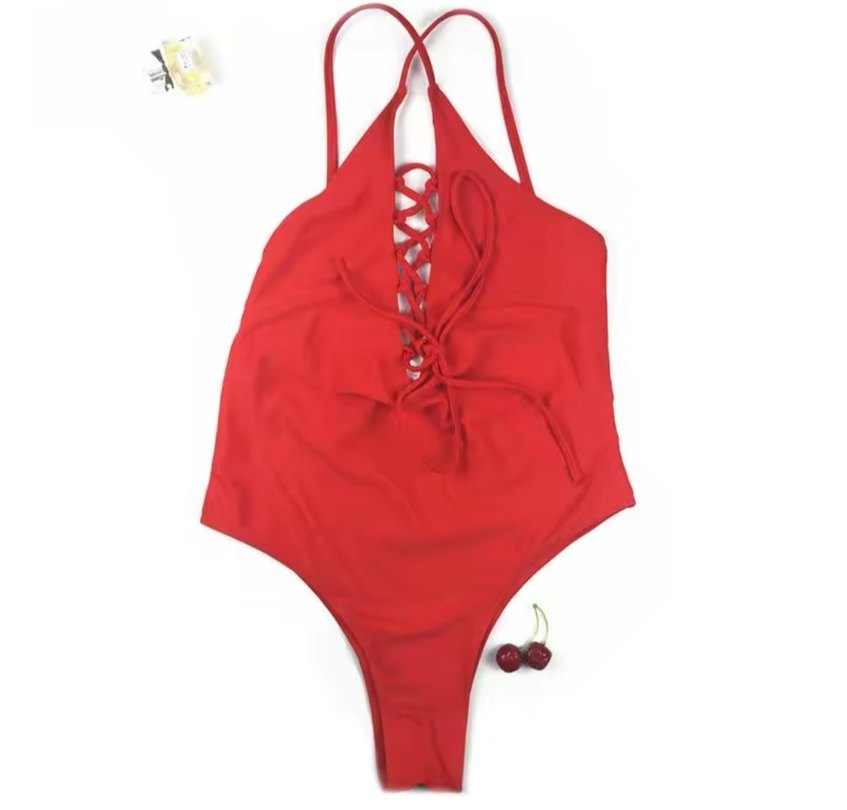 Cesur kırmızı renkli kadın mayosu, ipli askılar ve dikkat çekici detaylarına sahiptir. Parlak yüzeyli, midi boyda, plaj için uygun.Sorunsuz 38 40 beden uyumlu