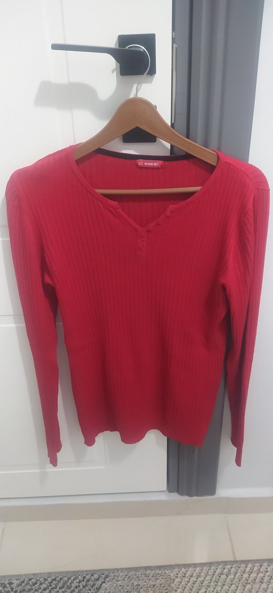 Kırmızı Triko Kadın Uzun Kollu Kazak