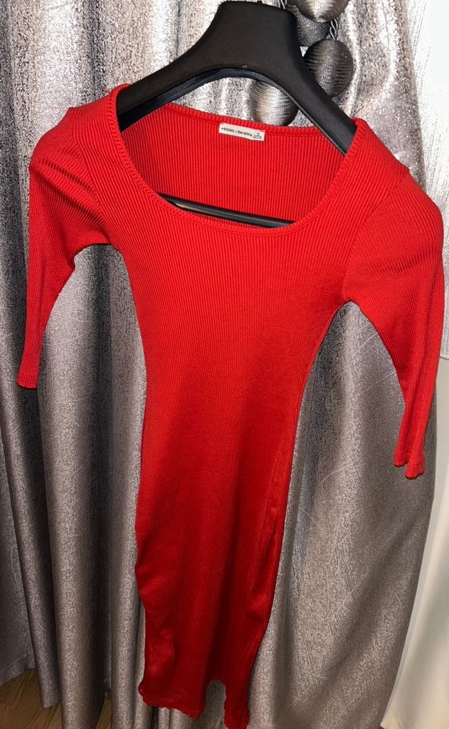 Kırmızı Triko Uzun Kollu Midi Elbise