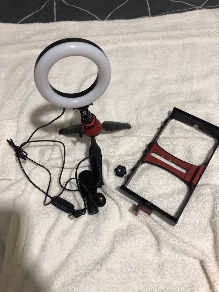 Kırmızı Tripodlu Selfie Çubuğu ve Halka Işık