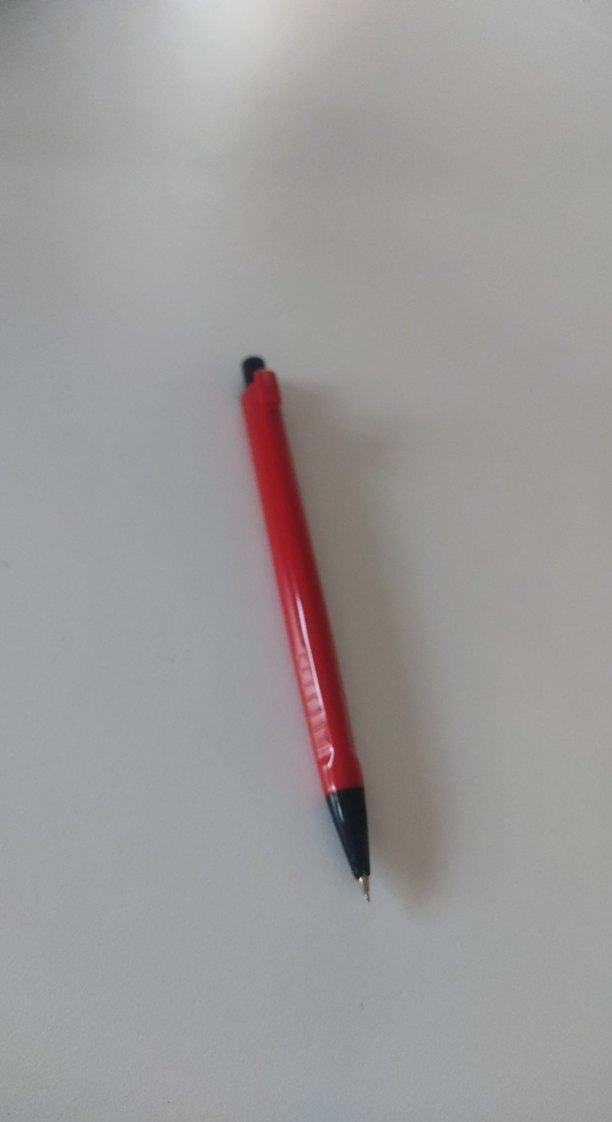Kırmızı renkli, tıklamalı mekanizmaya sahip tükenmez kalem. ️