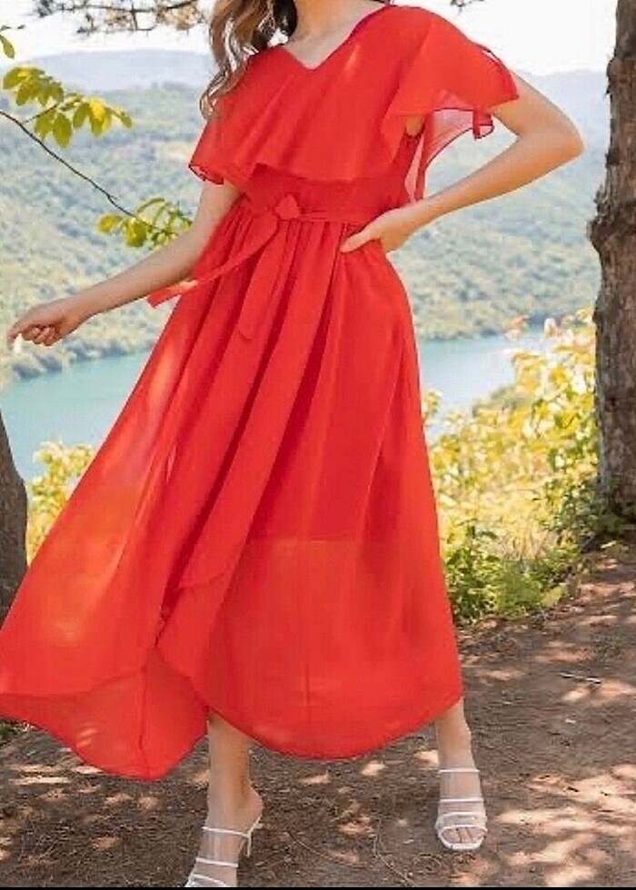 Yazlık nikahlık düğünlük kırmızı elbise