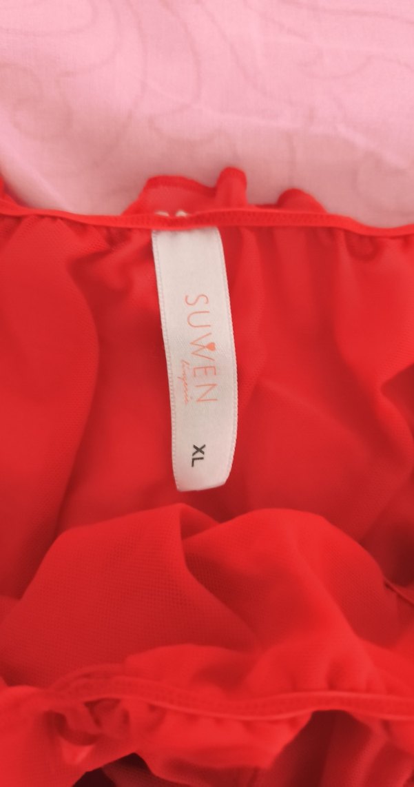 Parlak kırmızı renkli, ince tül kilot Marka: SUWEN, Beden: XL.