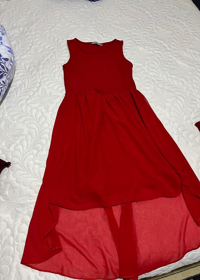 Kırmızı tüllü önü kısa arkası daha uzun elbise