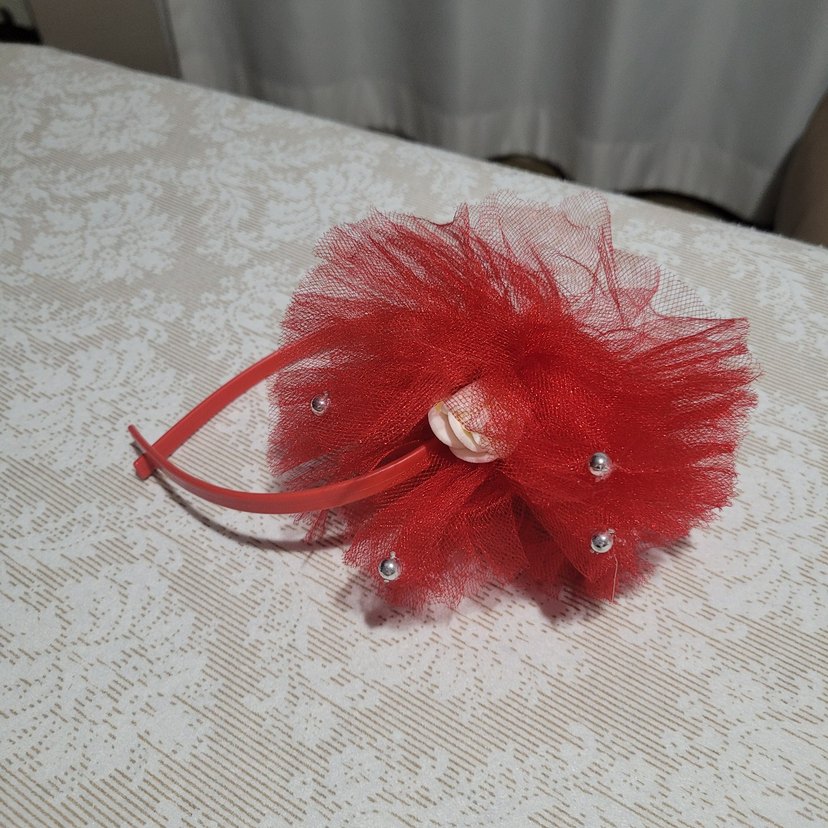 Kırmızı Tüllü ve Taşlı Çocuk Taç