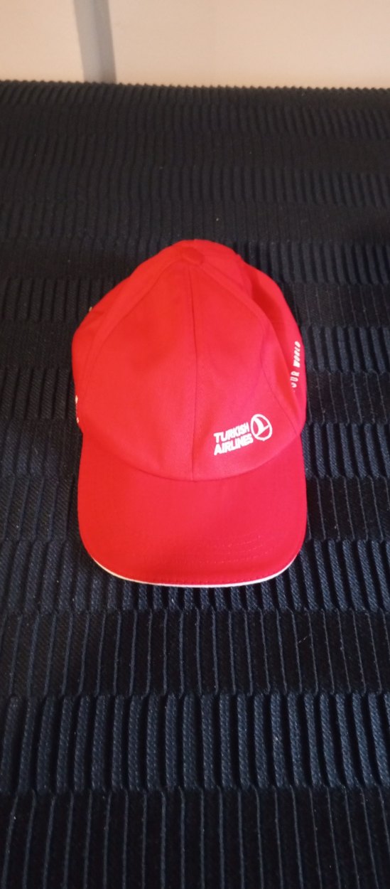 Velcro bantlı kırmızı Turkish Airlines şapka, sentetik kumaştan. Athleisure tarzına uygun streetwear stilinde.