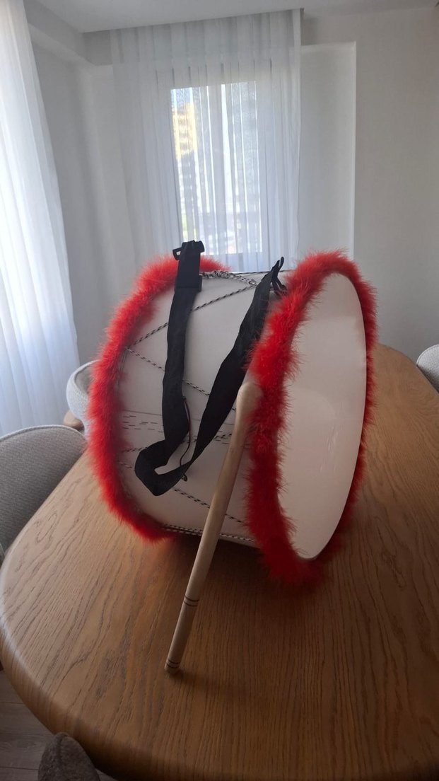 Kırmızı Tüylü Renkli Büyük Davul