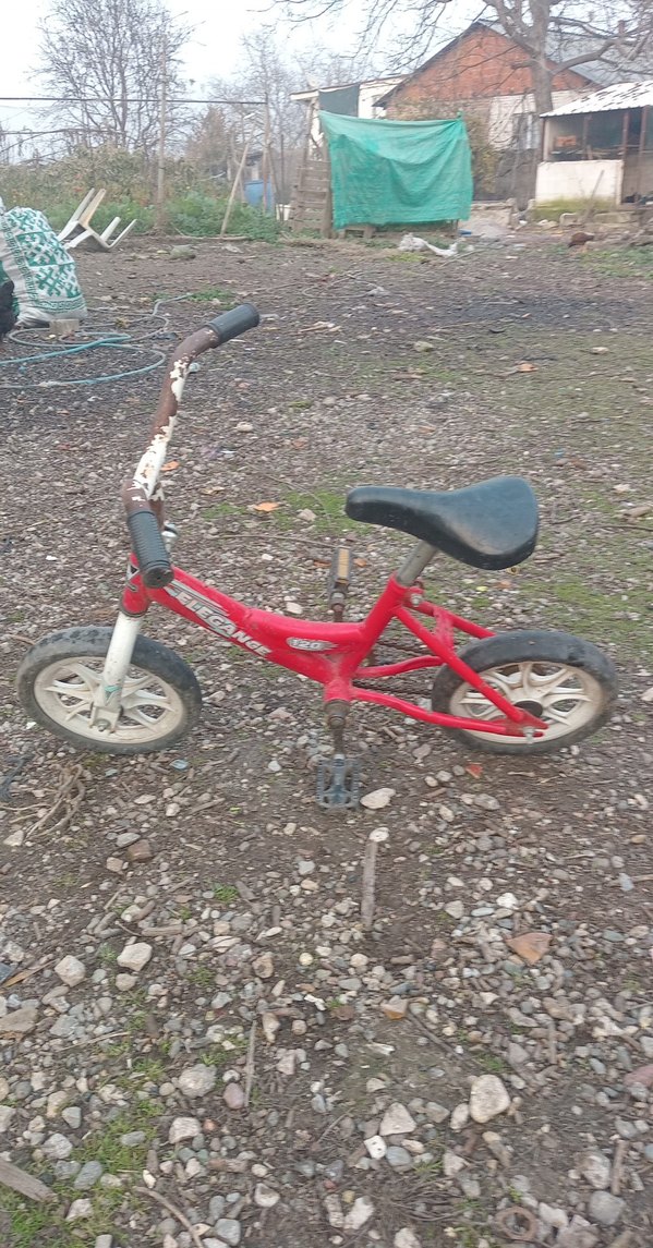 Kırmızı renkli bu üç tekerlekli çocuk bisikleti, rahat siyah oturağı ve sağlam yapısıyla dikkat çekiyor.