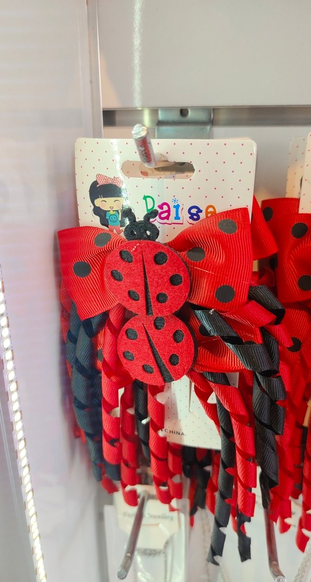 Kırmızı kurdeleli, uğur böceği desenli renkli çocuk saç bantları, bohem ve retro tarzlara uygun .