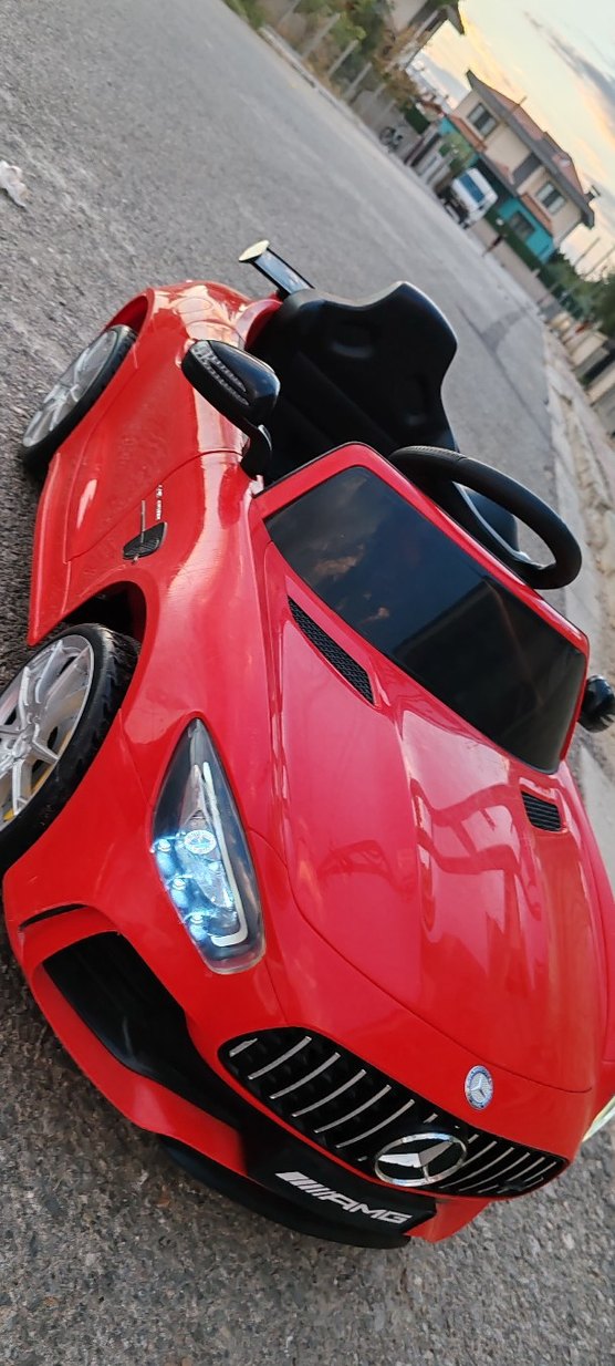 Canlı kırmızı renkte, gerçekçi detaylara sahip elektrikli çocuk arabasıdır. Aküsü 12 vat ve yepyeni. Yeni gibi az kullanılmıştır.Aküsü yeni takıldı ,uzaktan kumandası var ama aktif değil ,Şarj aleti var ve yeni ,müziği var ,çalıştırırken gerçek araba sesiyle çalışır,ön far arka stop lambaları yanar.