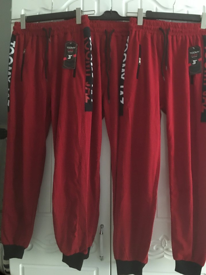 Kırmızı renkli, fermuarlı cepli, sentetik kumaştan rahat ve bol kesim eşofman. Günlük kullanıma uygun, streetwear ve athleisure tarzında. Tekli fiyat S/M beden mevcut bel lastikli esnetince 42/44 cm beli oluyor boy 106/108 cm
