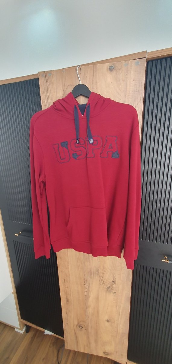 Kırmızı renkte, uzun kollu ve kapüşonlu USPA sweatshirt. Rahat kesimi ve fermuarlı detayıyla spor ve günlük kullanıma uygundur. ♀️