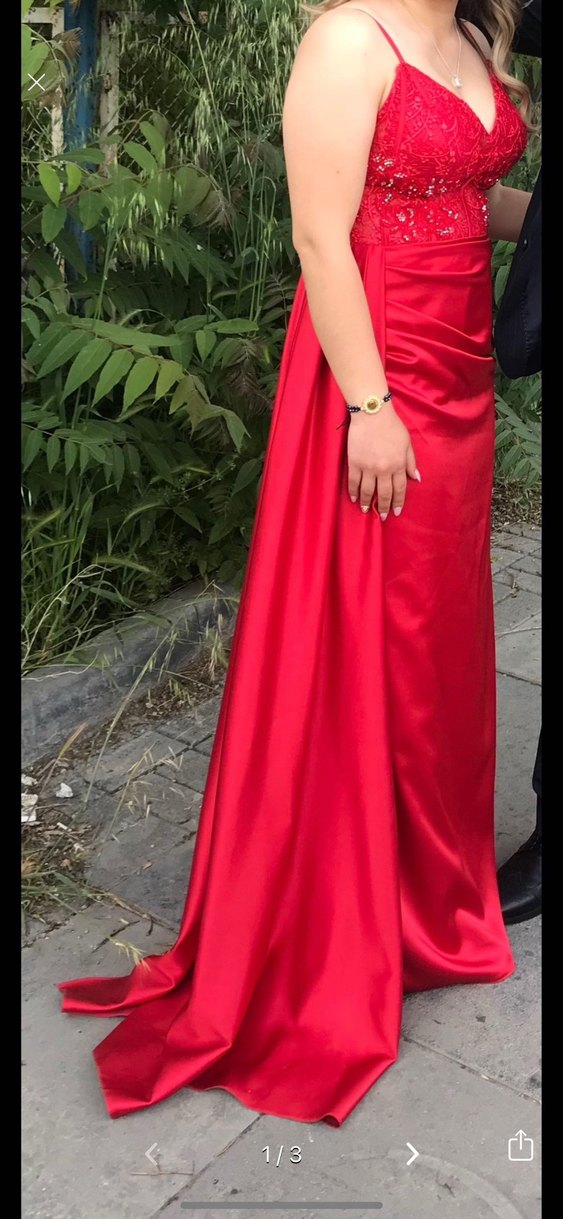 Kırmızı Uzun Abiye Elbise