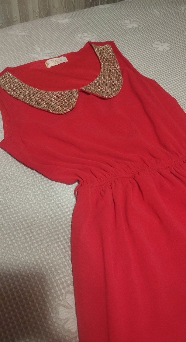 kırmızı uzun astarlı kısa kol abiye elbise