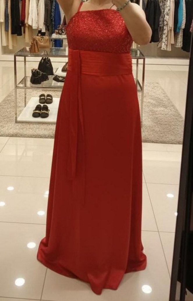 Kırmızı Uzun Drapeli Abiye Elbise