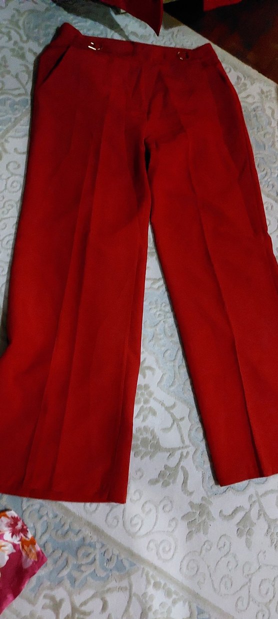 kırmızı pantolon tskimi , ipeksi kumaştan, drapeli ve uzun kesim kadın pantolonu. Minimalist ve normcore tarzıyla düğünlere veya gece uygun. 2 kere ofiste giyildi sakız küçük lekesi var çıkarı bilir ben uğraşamadim ekledim. sifir gibi çunku çok giyilmedi . iade kabul etmiyorum İstanbul.