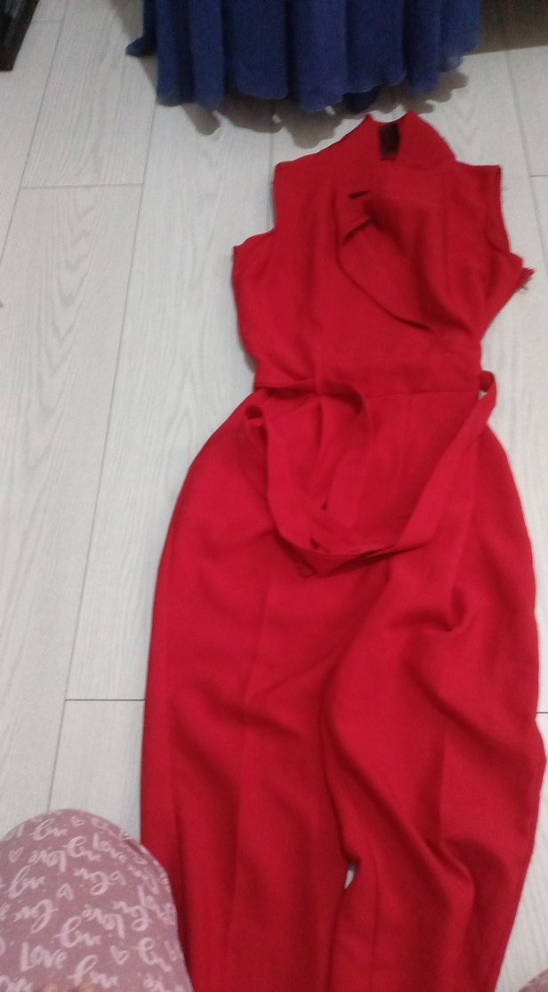 Kırmızı Uzun Drapeli Kadın Tulum
