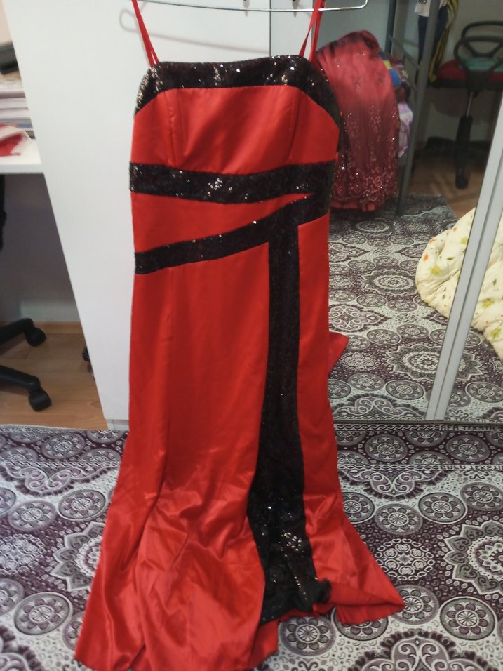 Kırmızı, uzun ve vücuda oturan bu abiye elbise straplez yaka ve ince askılarla, drapeli detaylar ve koyu desenli şeritlerle parti için uygun şık bir modeldir. ✨
