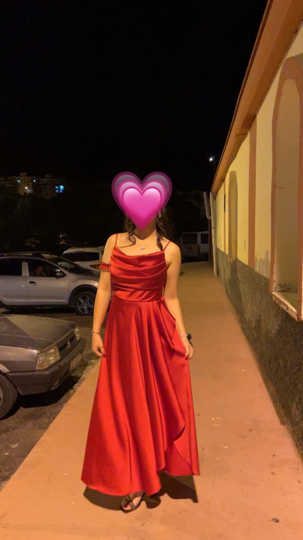 Kırmızı Uzun Drapeli Straplez Kadın Abiye Elbise