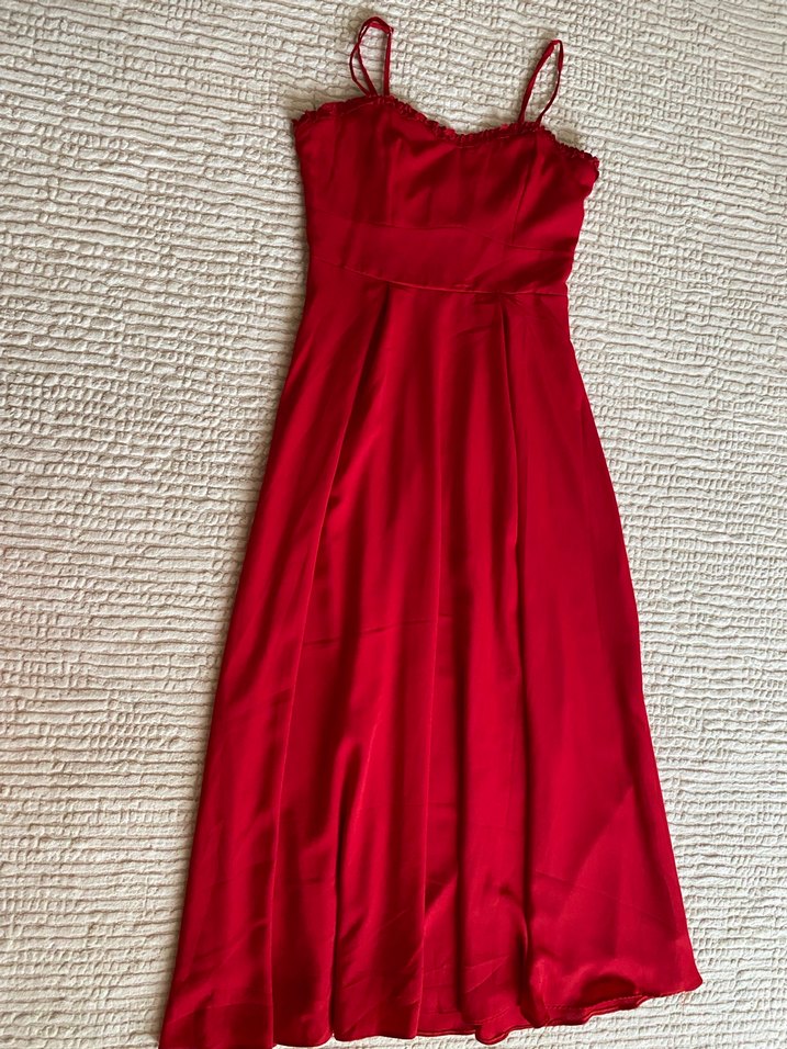 Kırmızı Uzun İpek Görünümlü Akışkan Elbise
