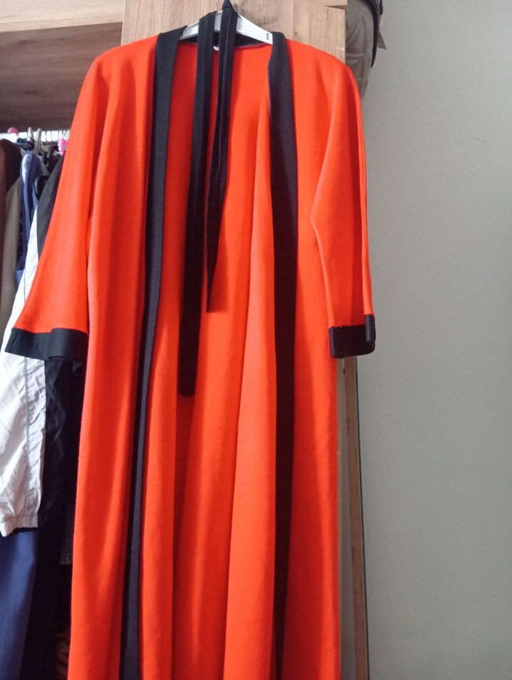 Uzun, kırmızı renkli kadın kimona, siyah detaylı ve uzun kollu. Minimalist sokak stili için uygun, rahat kesim.