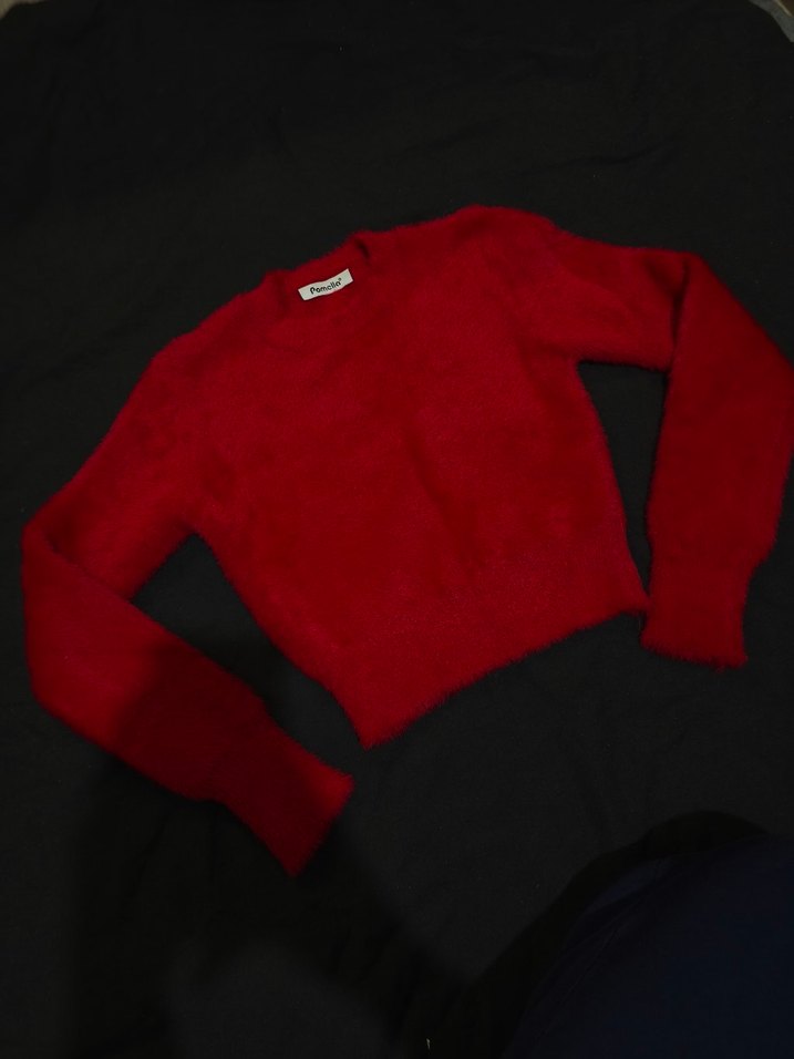 Kırmızı Uzun Kollu Basic Kadın Crop Kazak