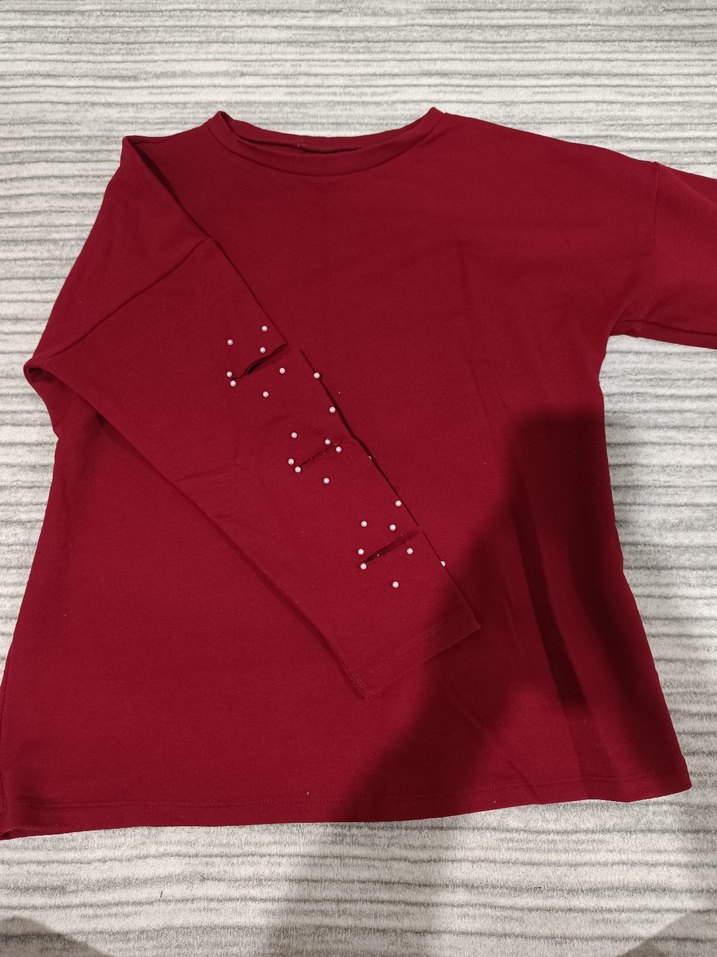 Kırmızı Uzun Kollu bluz incili
