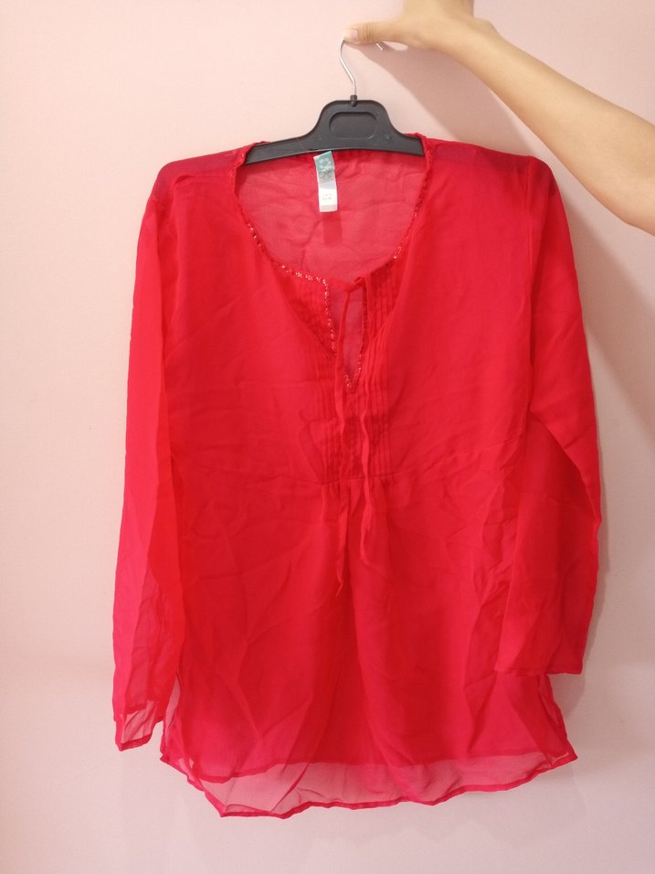 Kırmızı Uzun Kollu Bohem Kadın pareo