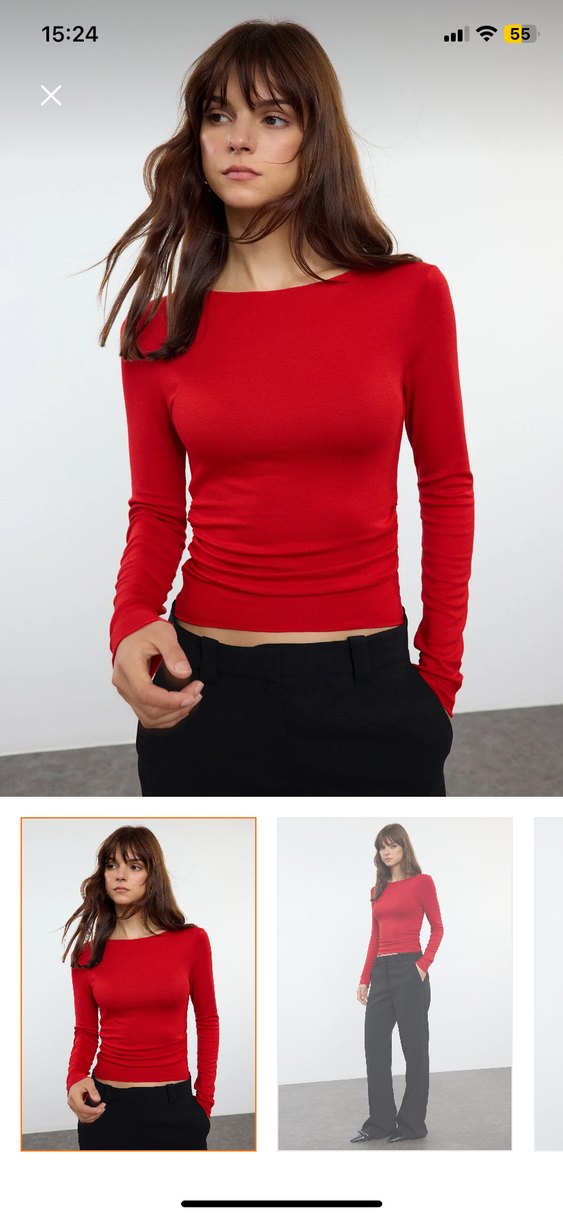 Kırmızı Uzun Kollu Dar Kesim Bluz