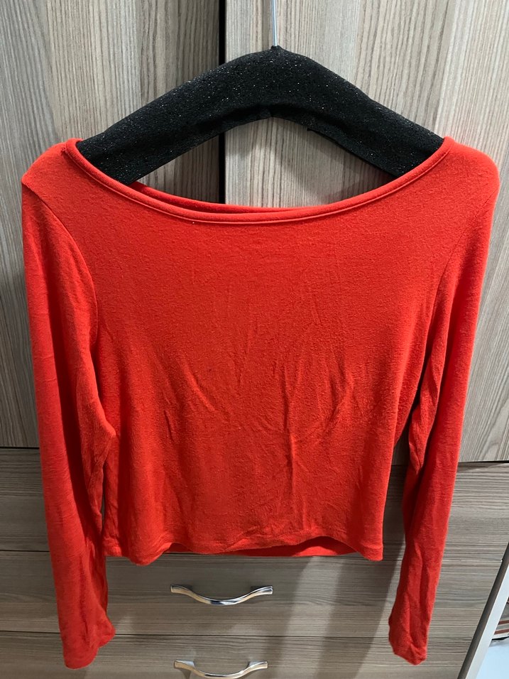 Kırmızı uzun kollu, tek renk ve dar kesim kadın kazak. Yumuşak sentetik kumaştan, günlük rahat ve minimal stil için uygun.