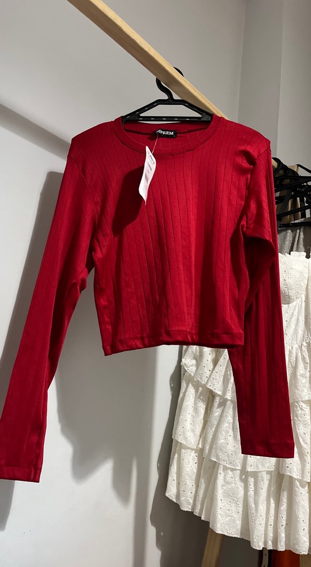 Kırmızı, uzun kollu ve dar kesim kadın kazak, midi boyda ve yuvarlak yakalıdır. Yumuşak sentetik kumaştan üretilmiş, günlük sokak stiline uygundur. M L beden