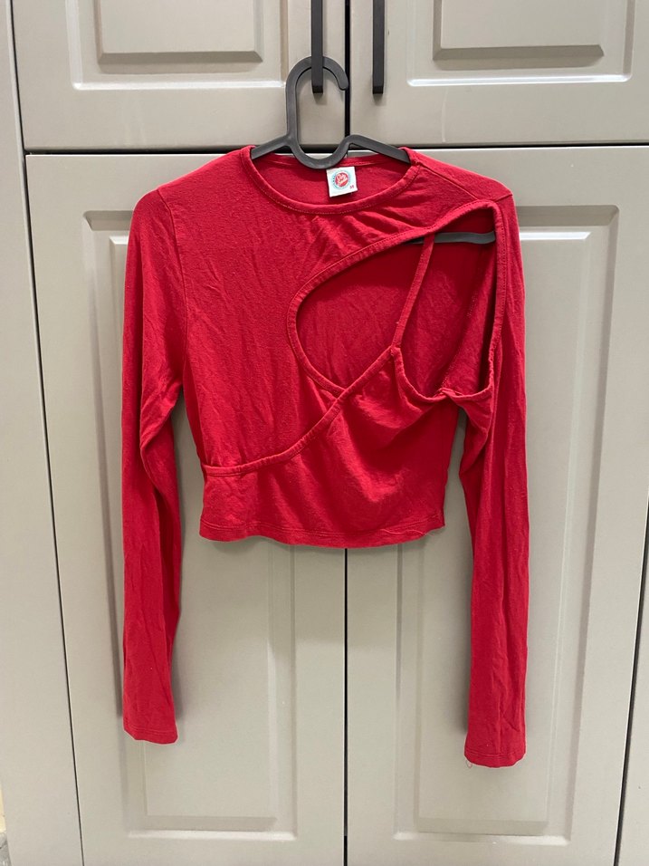 Kırmızı uzun kollu fitted bluz, yuvarlak yaka ve şık yırtmaç detayıyla, pürüzsüz sentetik kumaştan üretilmiştir. Romantik akşamlar için ideal. ❤️