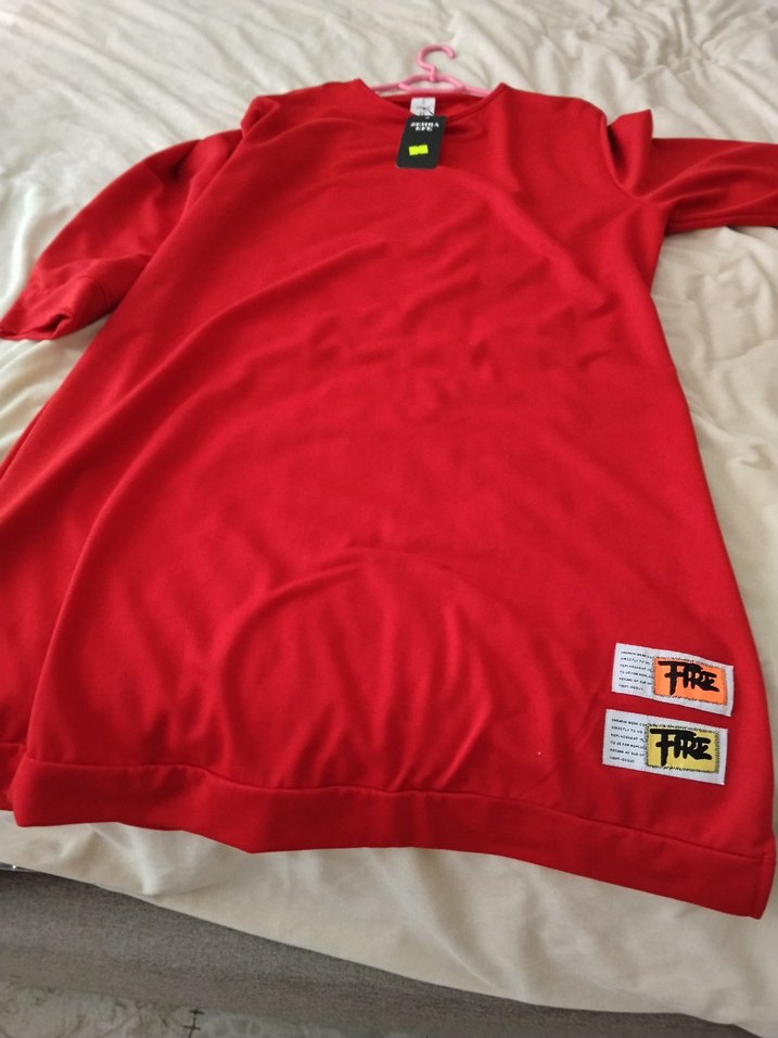 Kırmızı renkli, uzun kollu ve yuvarlak yakalı hamile sweatshirtü, yumuşak ve sıcak kumaştan üretilmiştir. Normal boyda, rahat kesimli ve sade tasarımlıdır. Etek kısmında küçük patch detayları bulunur.