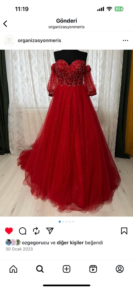 Kırmızı Uzun Kollu İşlemeli Kadın Abiye