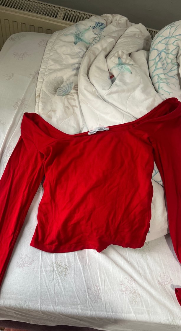 Kırmızı, uzun kollu ve kayık yaka olan bu bluz, drapeli tasarımıyla dikkat çeker. Pürüzsüz sentetik kumaştan, minimalist ve sokak stiline uygun olarak günlük kullanıma uygundur.
